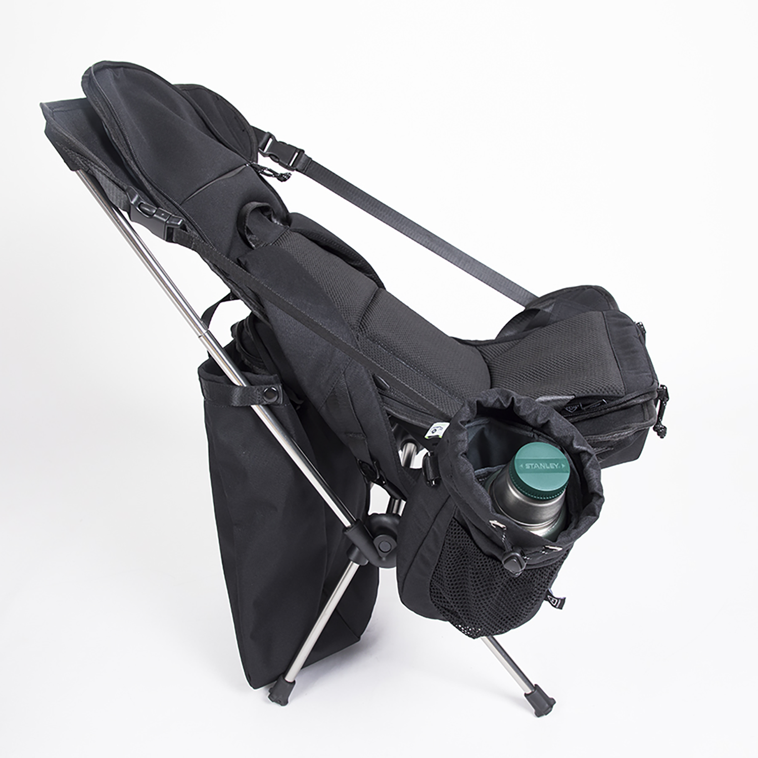 The Drip is just in the right size to keep your daily essentials and even a water bottle. It has a phone compartment and a front elastic pouch for small items, perfect for hands-free travelling. Drip can be attached to Pathfinder in its chair form to act as a water bottle holder or a storage pocket.