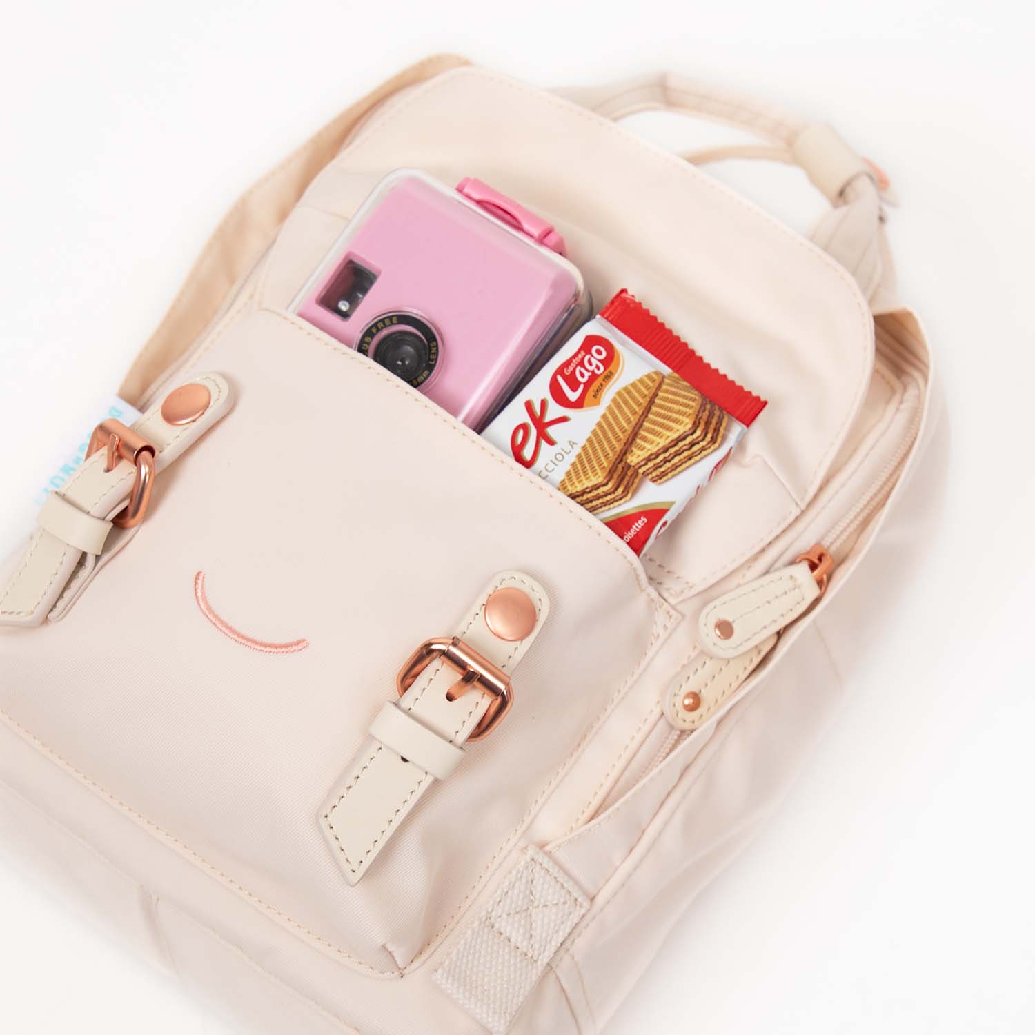 Though they are water-repellent and sturdy as ever, we are giving members of our Macaroon family a makeover. The sheer pink Macaroon Mini is taking the simple route to your heart - with a sunny smile and some shinier-than-usual buckles.